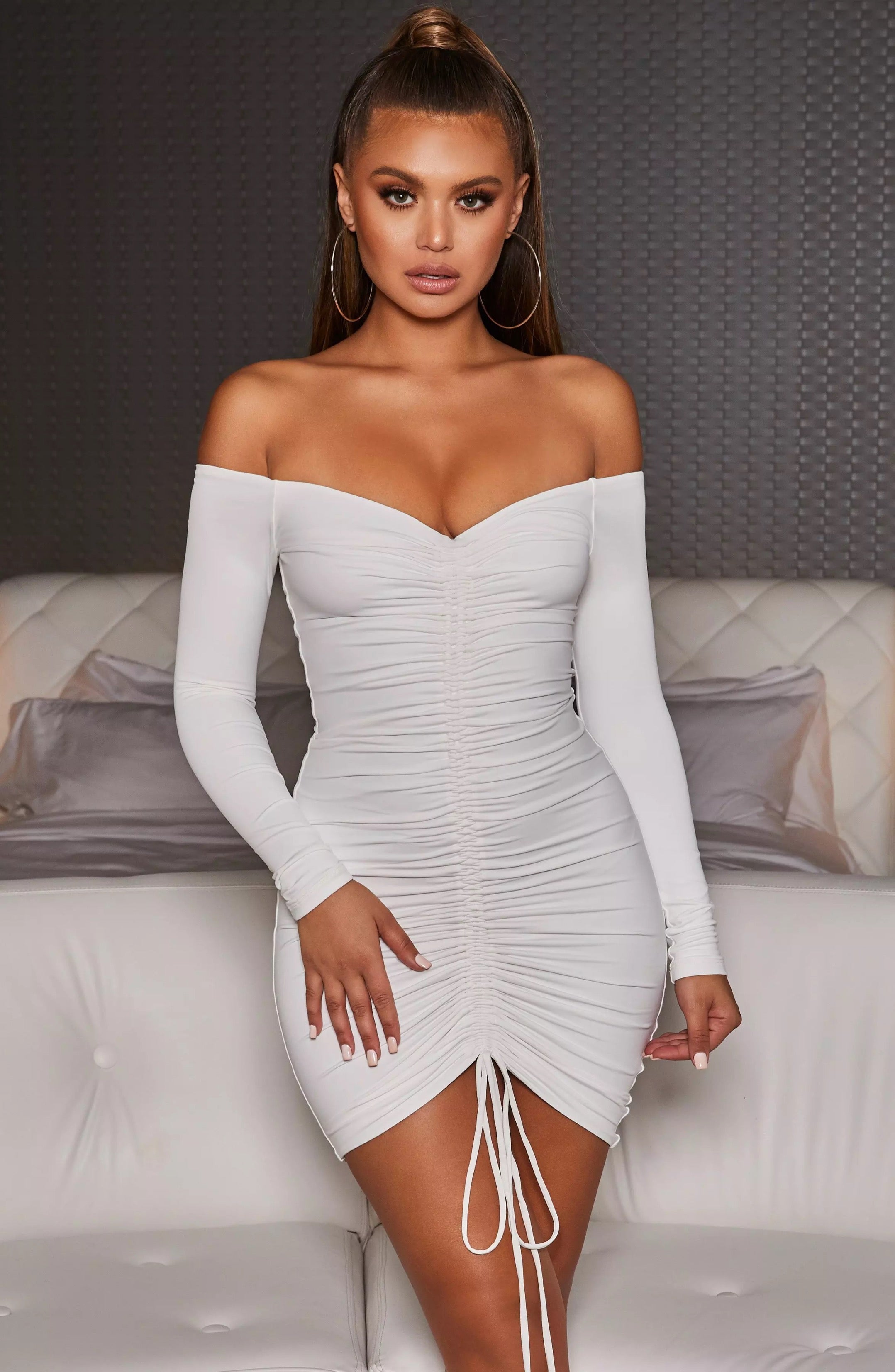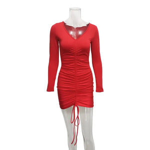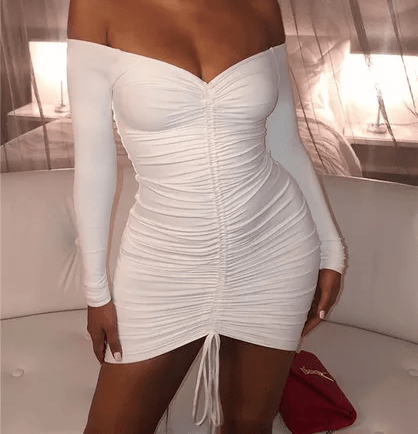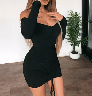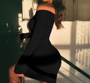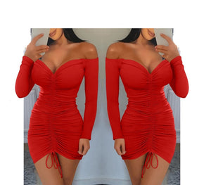 Fall Winter wrinkled long sleeve dress solid color strapless dress mini dress sexy