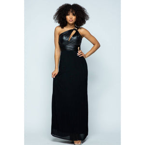 FAUX LEATHER MAXI DRESS 100% POLYESTER -ONE STRAP -DOUBLE LAYER -SMALL FRONT KEY WHOLE