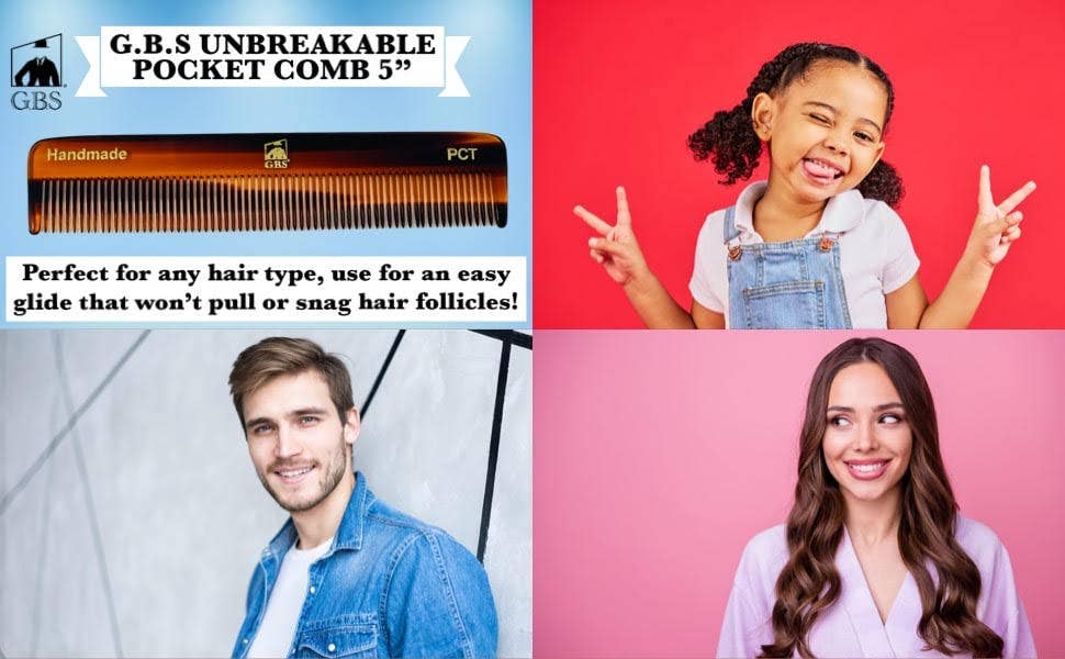 PCT Pocket Comb Fine Toothed Dressing, Grooming, and Styling Comb for Thinning Hair Beard Men Women Hand-Made Cellulose Acetate, Saw-Cut & Hand Polished 5" in Length These combs are not individually wrapped in plastic