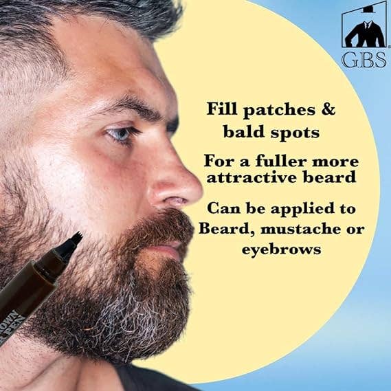 Beard Filler Pen 4 Tip + Beard Brush (Black or Brown)