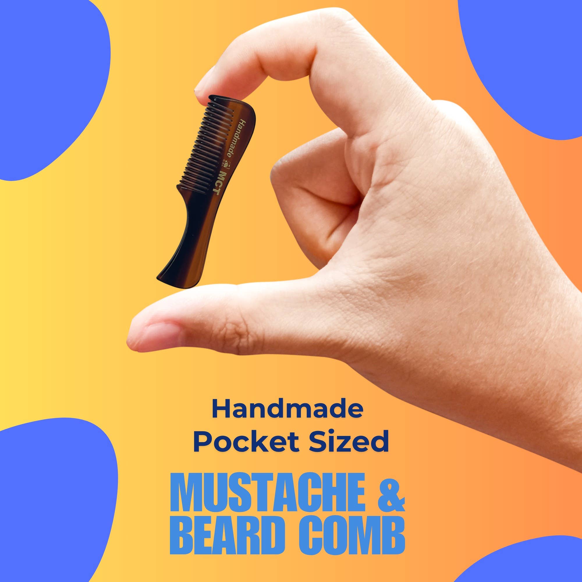 Moustache Comb Fine Toothed Hair Beard Men Hand-Made Cellulose Acetate, Saw-Cut & Hand Polished 3" in Length These combs are not individually wrapped in plastic