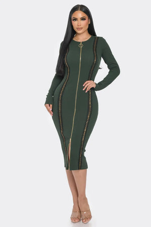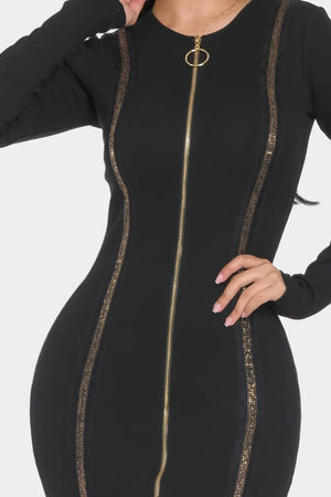 MIDI DRESS WITH GOLD TRIM DETAIL AND 2 WAY ZIPPER