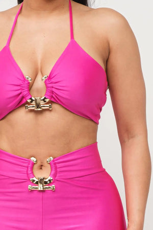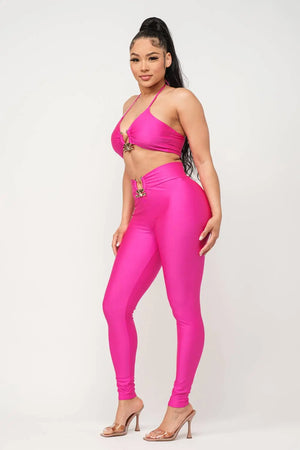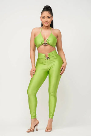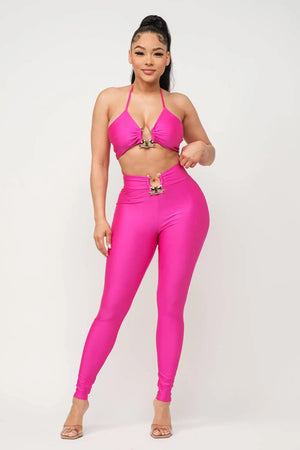 Front U-Ring Trim Bra Top And Leggings Set