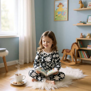 Our cozy jammies are thoughtfully crafted for comfort and style. Made from soft and cozy bamboo viscose, lil gremmies are about to become your kid's favorite pajamas! * Sold as a set - each order comes with a long sleeve top and pants * Pants have an elastic waistband for comfort and longevity * Offered in sizes 12-18m to 10Y As parents ourselves, we care about the the world we leave behind for our children. Our entire product catalog is: 👶 Kid Safe: Our products are CPSC compliant and are free of harsh flame-retardant chemicals. Our garments are made to be worn snugly to aid in prevention of fire and other hazards. 🪴 Health Friendly: Our materials and factory are OEKO-TEX® certified to be free of harmful chemicals and substances. 🌎 Planet Friendly: Our supply chain is GOTS certified, which means we use sustainable and organic materials that are produced in a factory with ethical and eco-friendly processes.