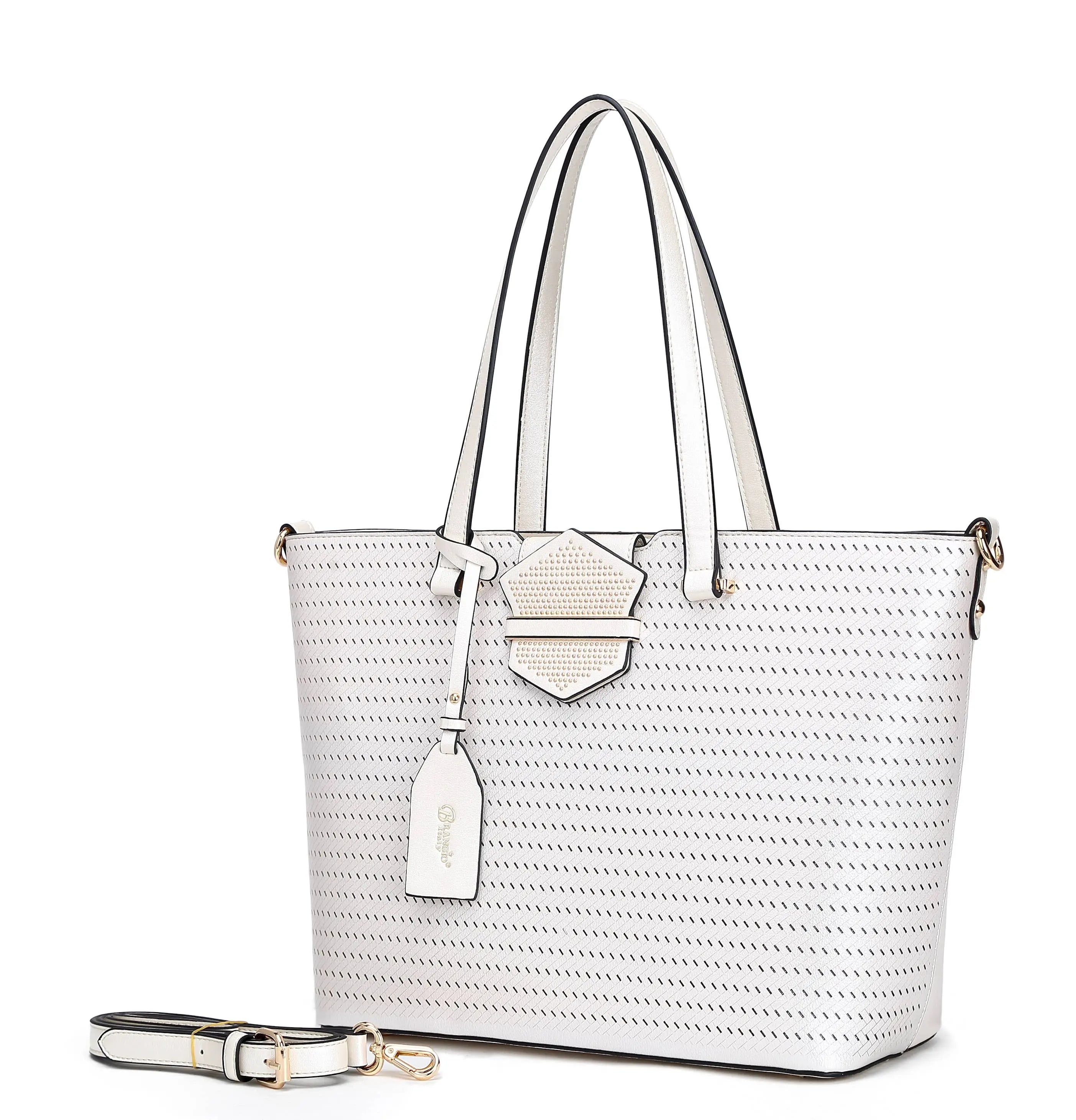 Elevate your everyday style with the Luxe Woven Tote with Detachable Tag and Strap. Designed for the modern woman, this chic bag combines elegance with functionality. The sophisticated pink hue pairs beautifully with the sleek woven texture, while the detachable luggage tag and adjustable strap add a stylish touch of versatility. Whether you're headed to the office, out shopping, or on a weekend getaway, this tote is the perfect choice for any occasion.