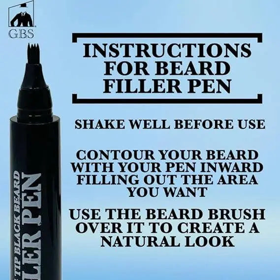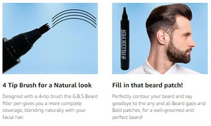 Beard Filler Pen 4 Tip + Beard Brush (Black or Brown)