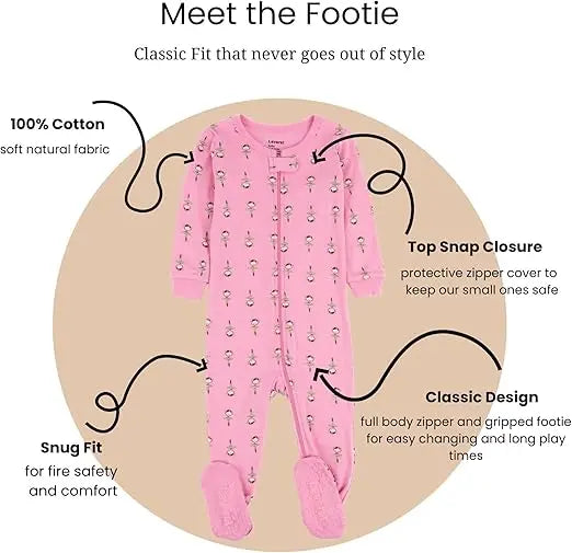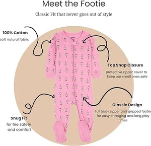 These Baby Footed Pajamas are ideal for not only getting the best night of rest but for looking stylish with other members of the family. Each product consists of long-sleeves with a zip-up set, keeping wearers perfectly secure in their outfits for all those chilly nights. The footed grips easily complement the soft cotton material, while the tagless labels prevent scratches on any exposed skin. We have sizes from ages 3 months to 5 years old, be sure to choose a size larger to accommodate any shrinking after washing. Find a style that matches your little ones special tastes with these Baby Footed Pajamas! Best Holiday gift for Christmas, Hanukkah or any Holiday or special occasion.