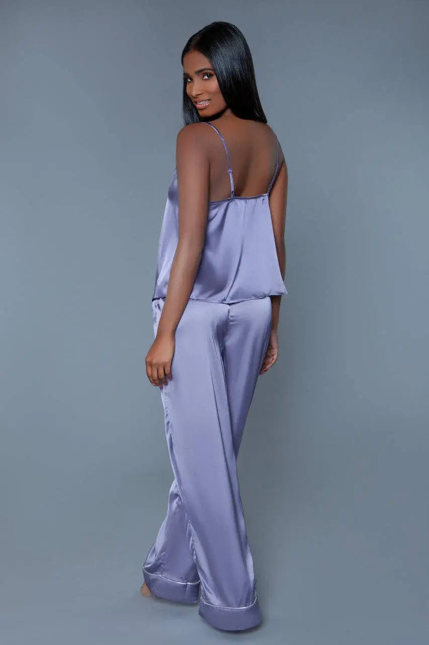 Elevate your loungewear with our Madison satin pajama set, enhanced with refined piping detail for a classic, polished look. Crafted from soft, silky satin, this set feels luxurious against your skin, ensuring comfort all night long. The cami top features adjustable spaghetti straps and a relaxed fit, making it both flattering and comfortable. Paired with flowy wide-leg pants adorned with sleek piping accents, this set offers a modern twist on timeless elegance. Perfect for unwinding at home or adding a touch of sophistication to your nighttime routine. * Silky smooth fabric * V neckline * Adjustable spaghetti straps * Front tie drawstring pants * wide leg * Loose fit * Woven Machine wash with similar colors. Do not bleach. Dry flat. Do not dry clean. Iron whilst damp. Be Wicked Polybag Packaging