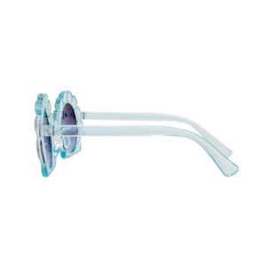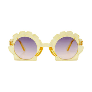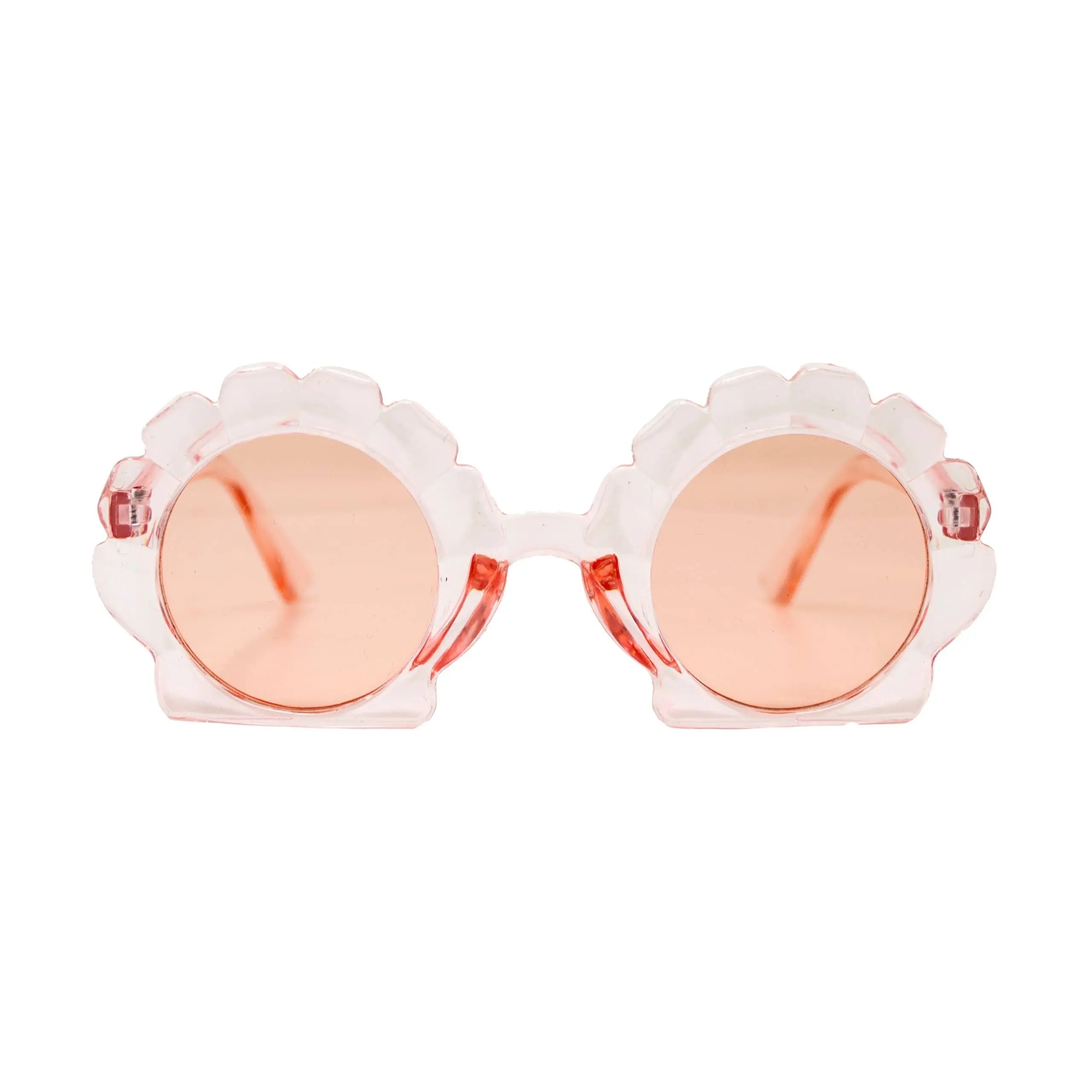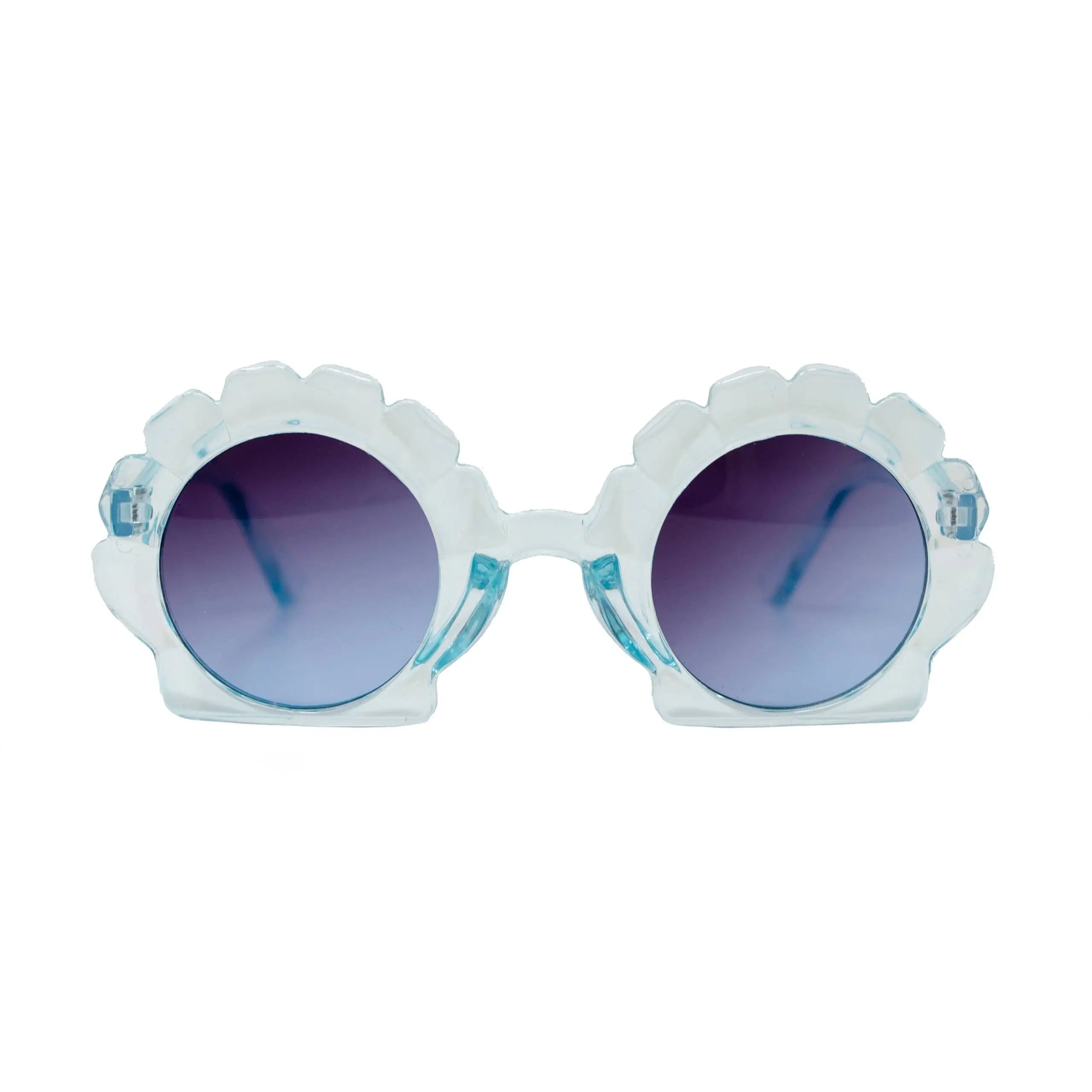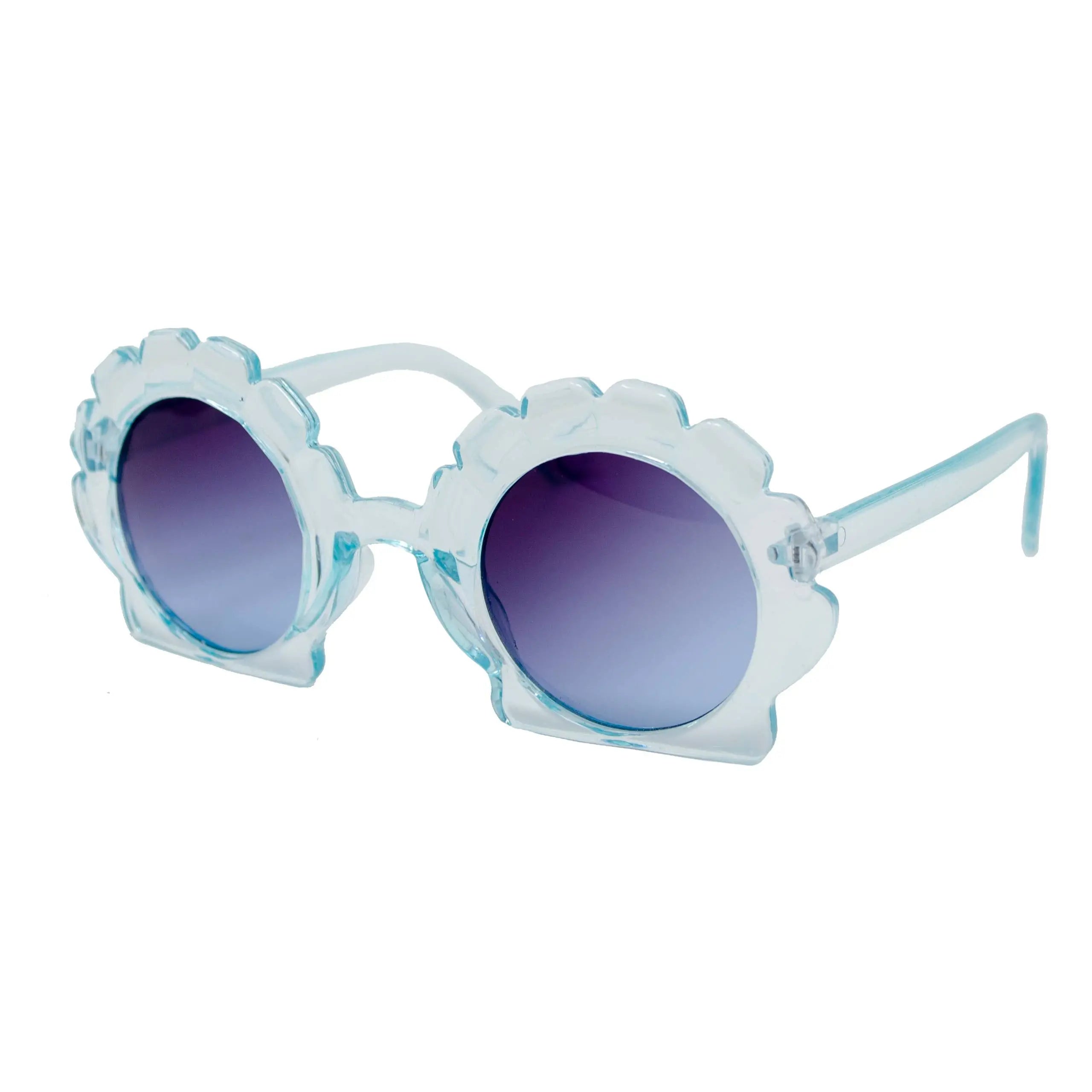 Seashell shape sunglasses for kids. UV400 protection Comes with suede pouch. Recommended for ages 3+